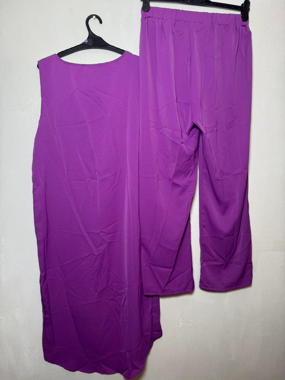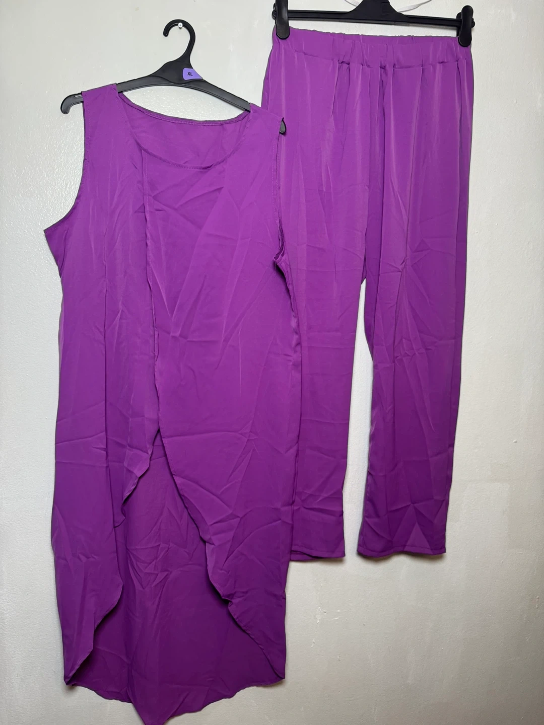 This Frodio set includes a sleeveless tunic top and matching pants. It's a vibrant purple color. The top is a size XXL and features a layered, flowy design.