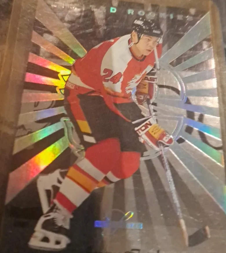 This is a 1997-98 Fleer Tradition hockey trading card featuring a rookie player. The card has a holographic design. It's a collectible item for hockey fans.