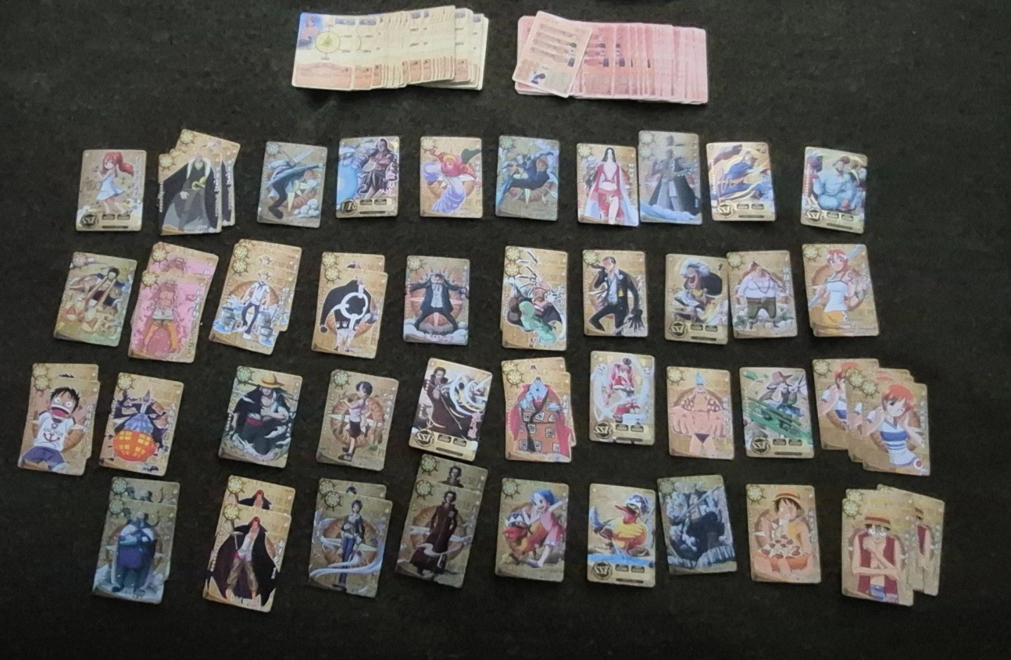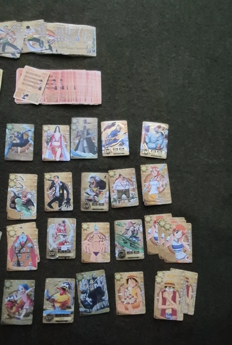 Selling a mixed lot of trading cards featuring both Pokemon and One Piece characters. Great for collectors or fans of either series!