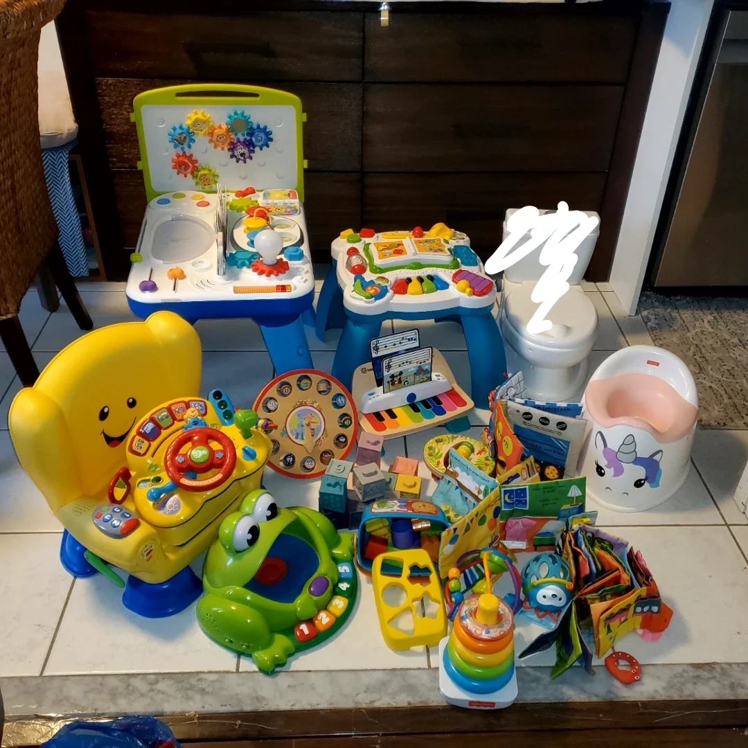 This bundle includes a variety of Fisher-Price baby and toddler toys. It features learning tables, a musical keyboard, a potty training seat, and more! Lots of fun and educational items for little ones.