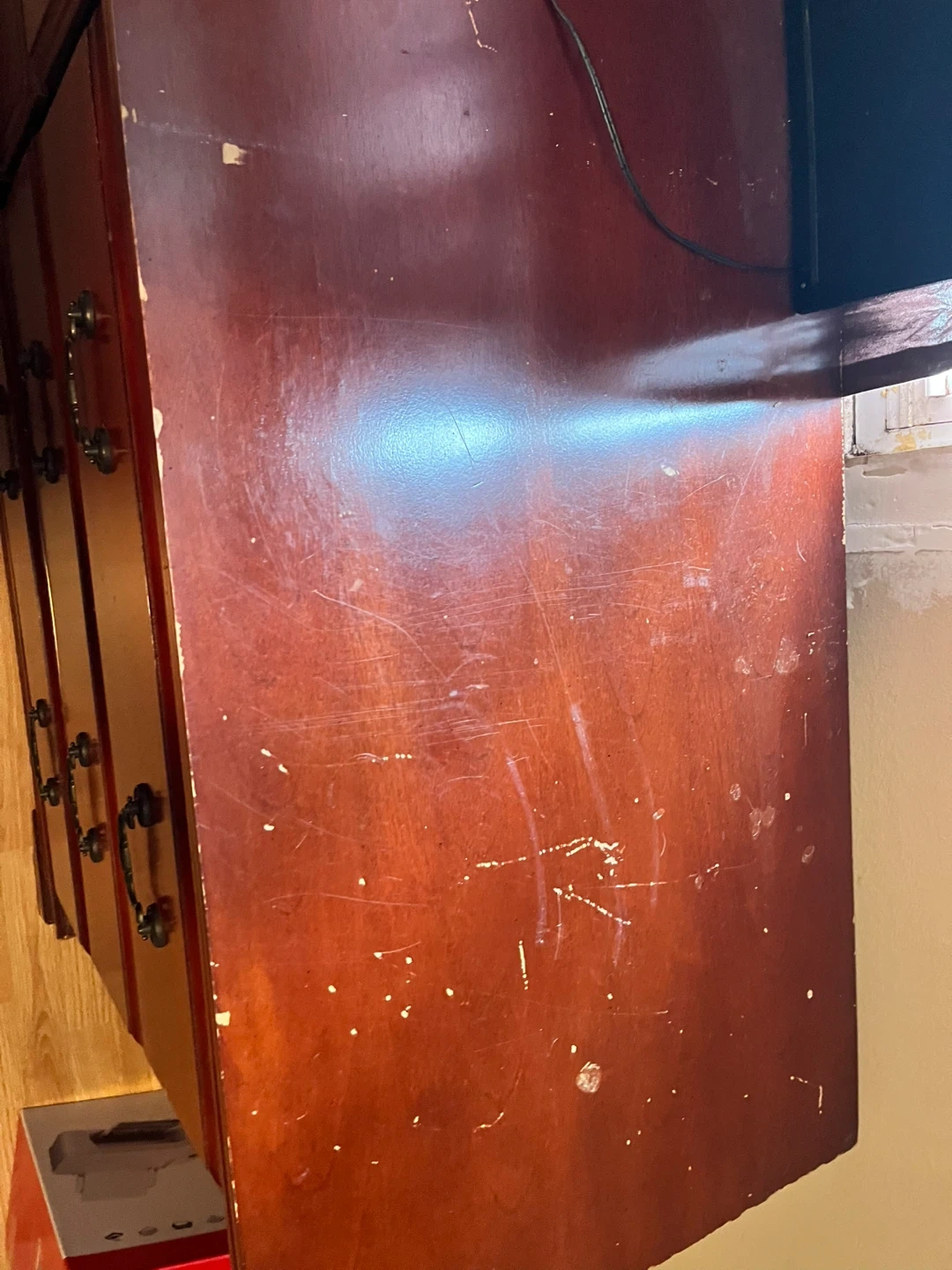 Has some damage as you can see in the pics but maybe someone can refinish it.
