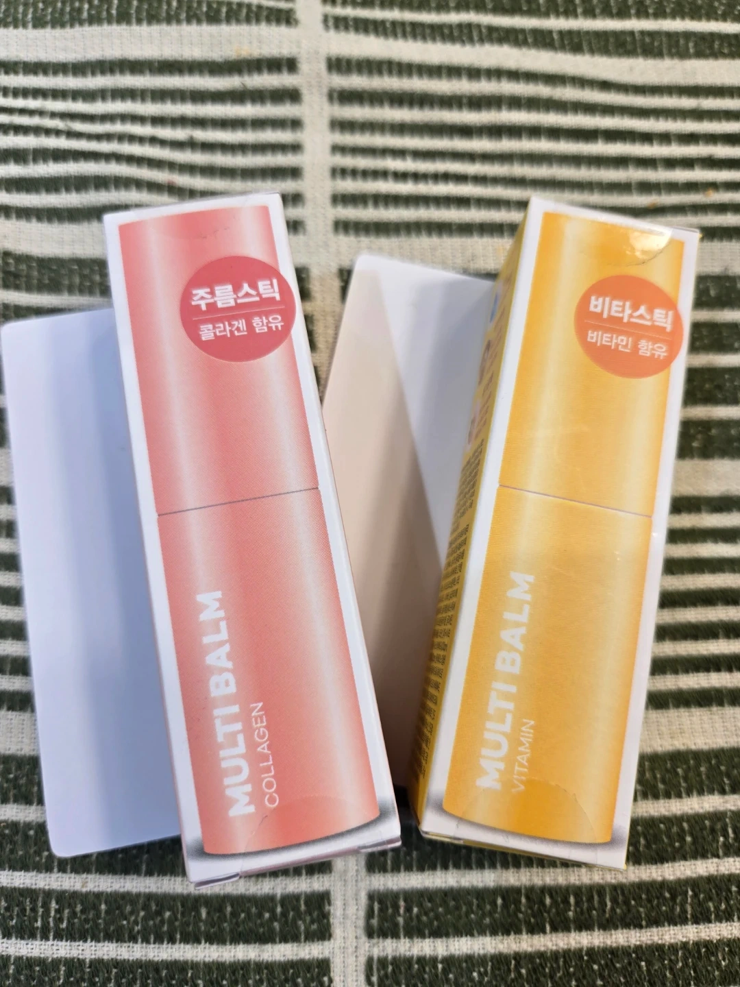 Hydrating moisturizing Multi Balm stick with Vitamin and one Multi Balm stick with Collagen. These balms are designed for skin nourishment and glow. They're great for on-the-go application.