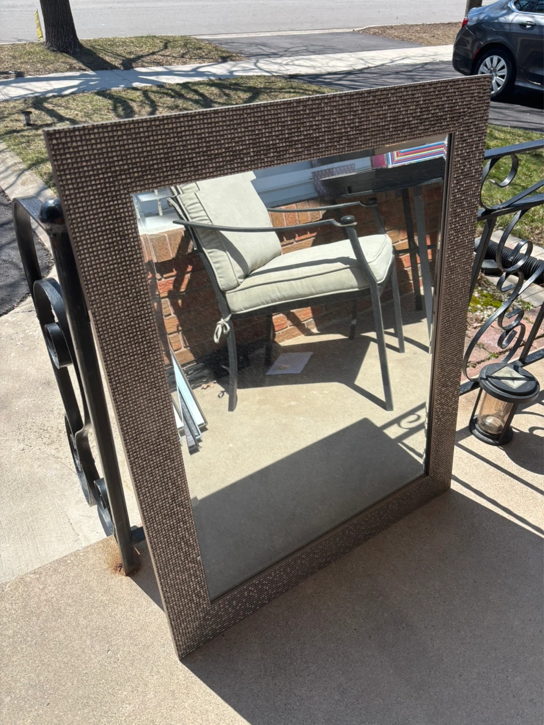 This is a decorative wall mirror with a textured frame. The frame is a neutral brown tone, making it versatile for many decor styles. It's perfect for adding a touch of elegance to any room.
