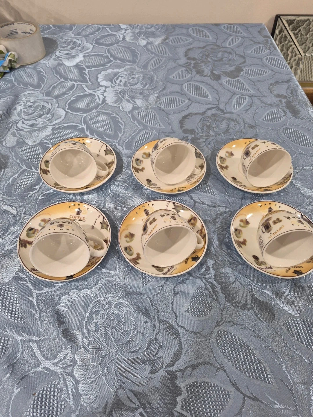 Selling a set of six Infinity Fine Bone China coffee cups and saucers. They're dishwasher and microwave safe. Perfect for enjoying your favourite brew!