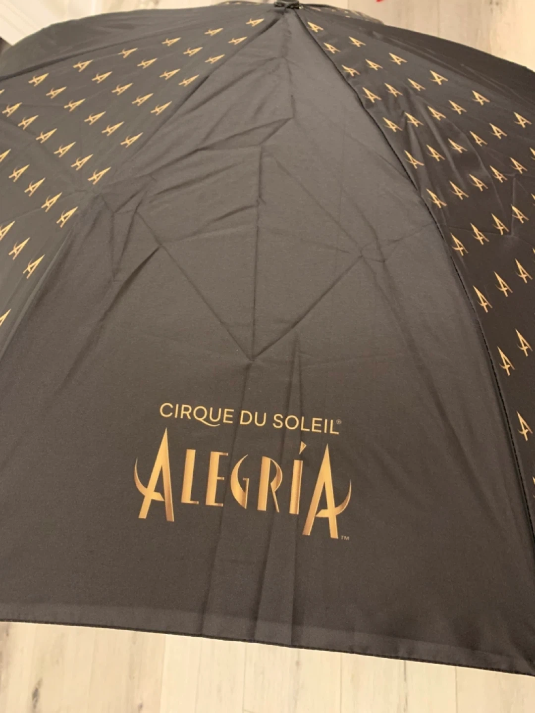 Selling a stylish Cirque du Soleil Alegria umbrella in black and gold. It's in brand new condition and features the Alegria logo. 2 available $35.00 each or best offer.