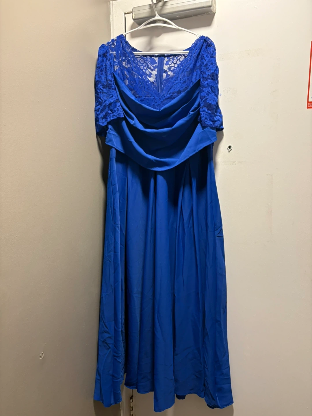This is a beautiful blue dress from Shein Curve in size 3XL. It features a lovely lace detail on the upper part of the dress. It's in great condition and ready for a new owner!