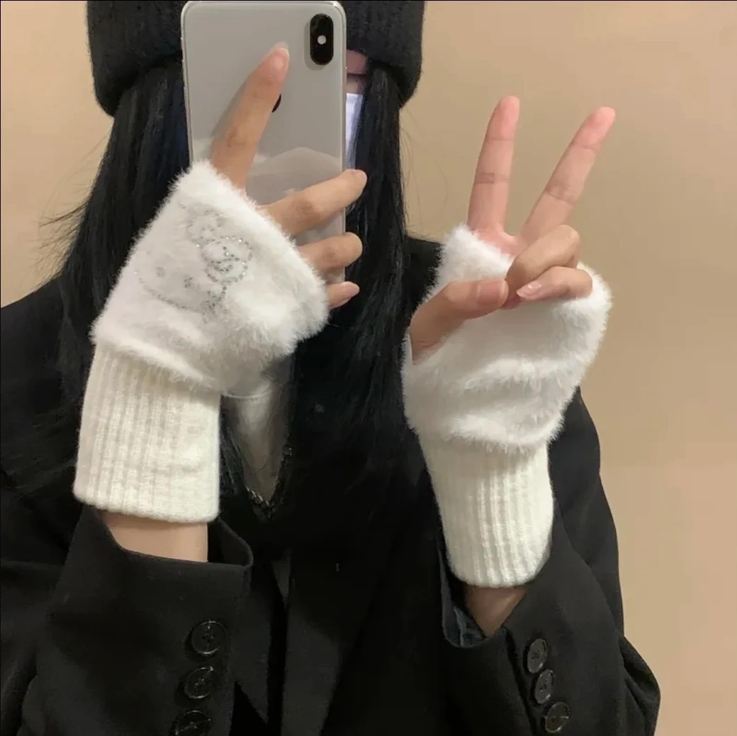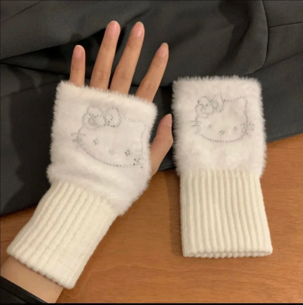 White Hello Kitty Fingerless Fuzzy Gloves π₯