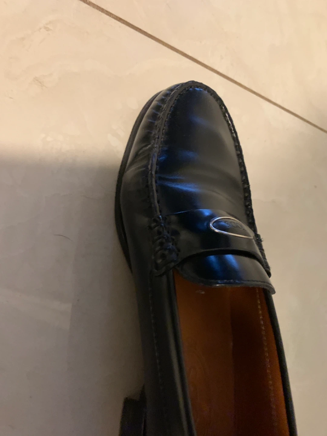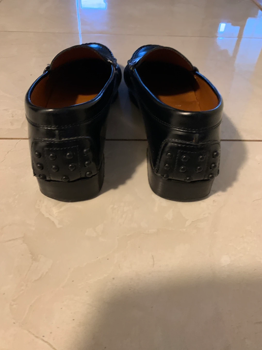 Classic TOD'S black leather driving shoes. These Gommino loafers feature the iconic rubber pebble sole and a polished metal accent. Size is 38.