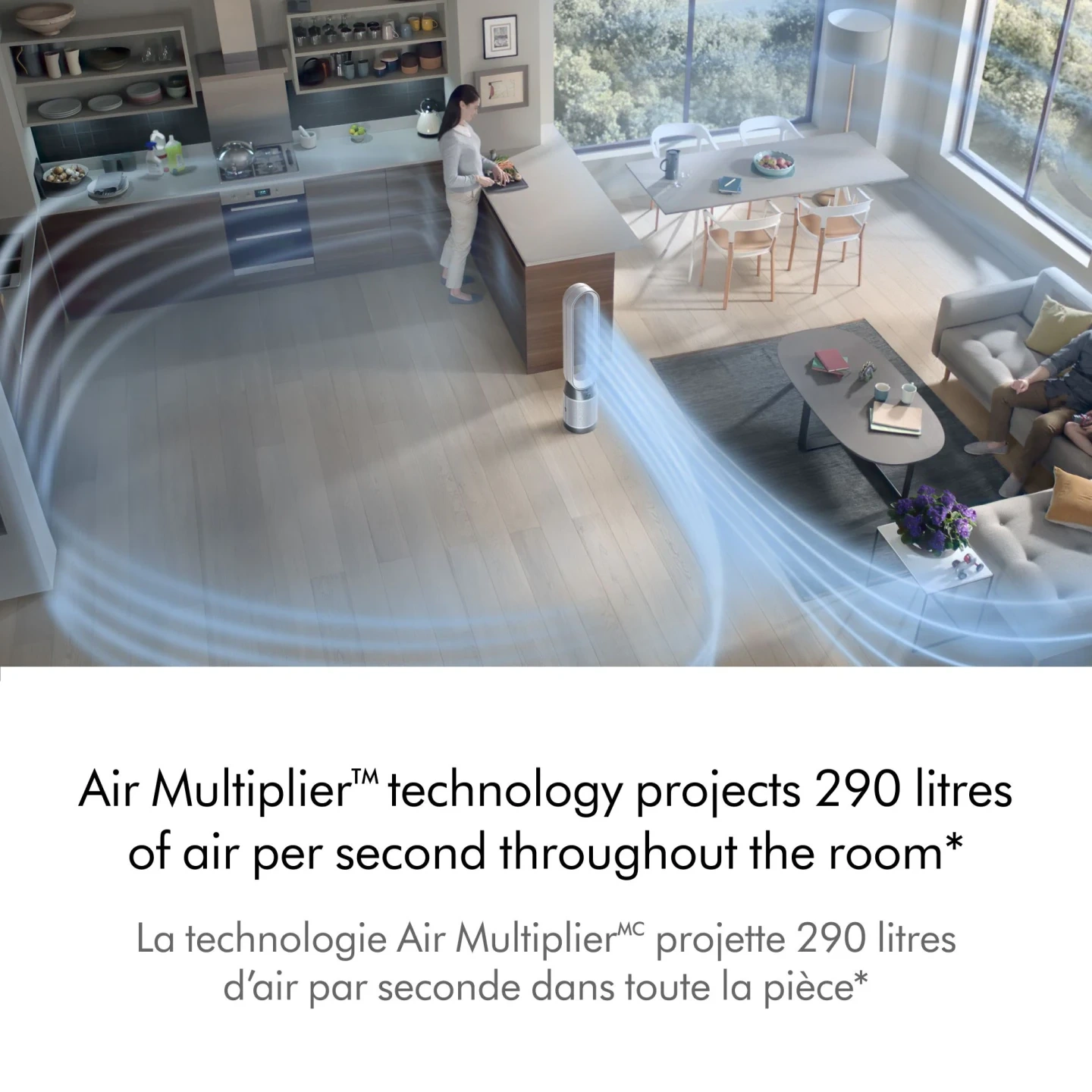 Air Multiplier™ technology to draw in distant pollutants and project 290L of air per second throughout the room*