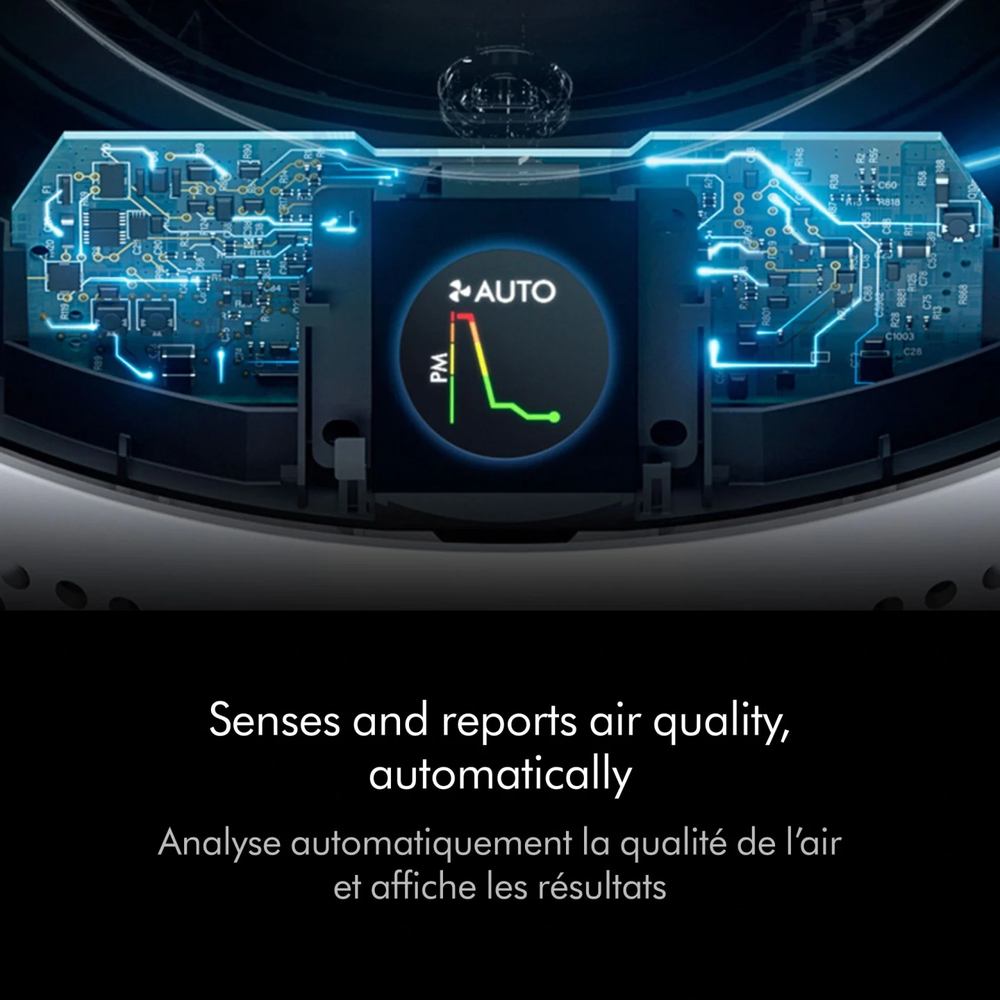 Sensors constantly analyze your air, while the unique algorithm cross-checks data per second to precisely monitor, report and improve your air quality
