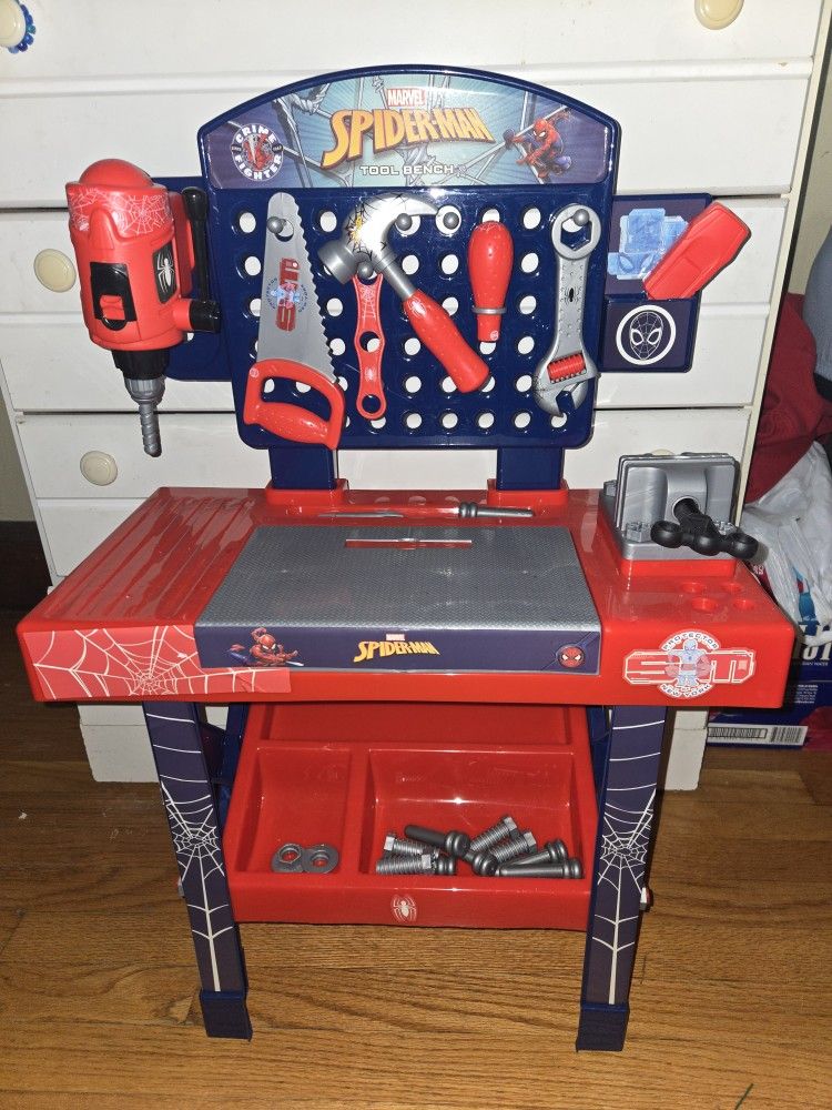 Barely played with Spiderman Toy Toolbench. Comes with tools.