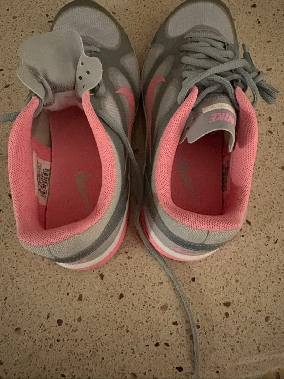 These are Nike women's running shoes in grey and pink. Size is 7.5 US women's. Comes with original box.