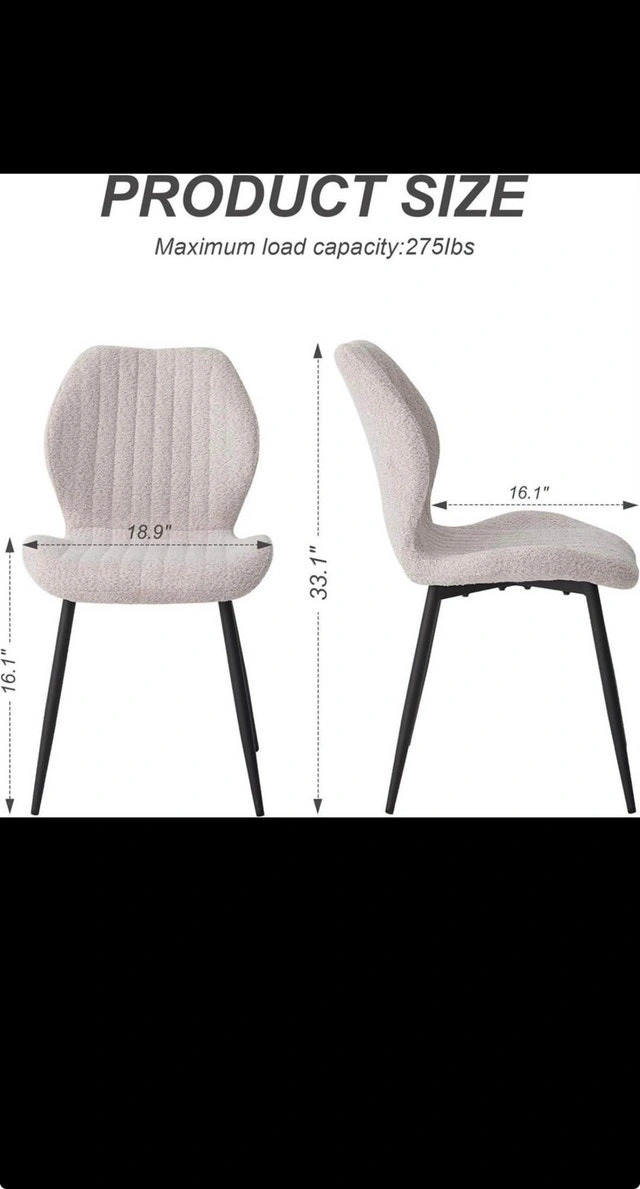 BNIB Brand new minimalist upholstered accent chair by Lecafur HL. Clean modern design with a contoured seat and sturdy metal legs — perfect for dining rooms, vanity setups, offices, or as an accent chair. Features: • Comfortable padded upholstered seat • Contoured ergonomic backrest for support • Modern minimalist design that fits many interiors • Strong metal legs with floor protection • Great for dining room, bedroom, vanity, or living room. Owner selling. Cash or cashless payment accepted. Curbside pick up available.