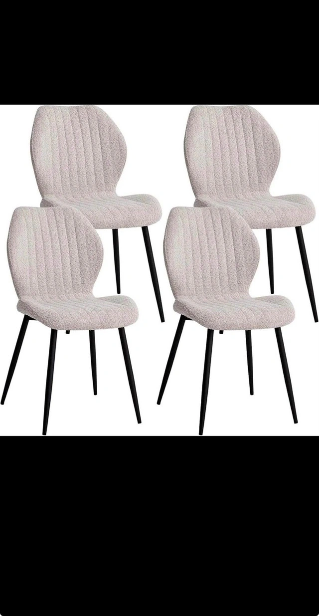 BNIB Brand new minimalist upholstered accent chair by Lecafur HL. Clean modern design with a contoured seat and sturdy metal legs — perfect for dining rooms, vanity setups, offices, or as an accent chair. Features: • Comfortable padded upholstered seat • Contoured ergonomic backrest for support • Modern minimalist design that fits many interiors • Strong metal legs with floor protection • Great for dining room, bedroom, vanity, or living room. Owner selling. Cash or cashless payment accepted. Curbside pick up available.