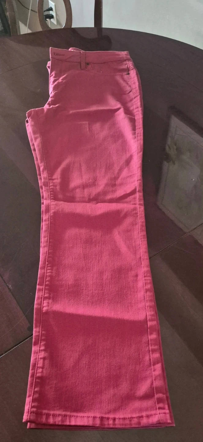 Santana Essential Denim jeans in a berry colour. These flared jeans are size 14x32 and made with 78% cotton, 20% polyester, and 2% spandex. They feature a classic five-pocket style. Great for casual wear!