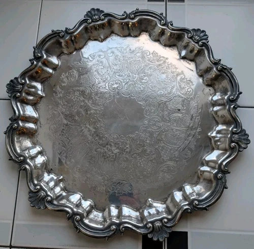Elevate your serving game with this exquisite Sheffield reproduction 16" tray, a nod to classic Victorian elegance. Expertly crafted from high-quality silverplate, this tray boasts a timeless design that's as functional as it is decorative, perfect for hosting lavish dinners or displaying as a statement piece in your home. With its intricate detailing and superior construction, this tray mirrors the opulence of antique silverware, making it a must-have for collectors and those who appreciate the grandeur of vintage craftsmanship. Whether used for special occasions or as an eye-catching display in your collection, it adds a touch of sophistication to any setting.