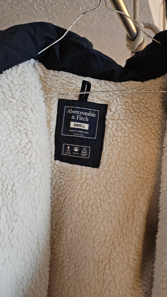 Selling a cozy Abercrombie & Fitch puffer jacket. It's a size small and features a warm, sherpa-lined interior and a fur-trimmed hood. Perfect for staying warm during the colder months!