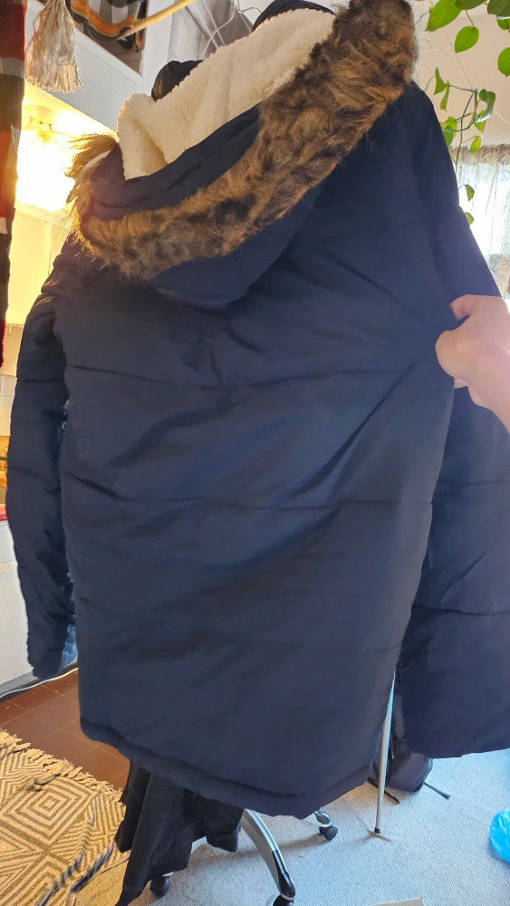 Selling a cozy Abercrombie & Fitch puffer jacket. It's a size small and features a warm, sherpa-lined interior and a fur-trimmed hood. Perfect for staying warm during the colder months!