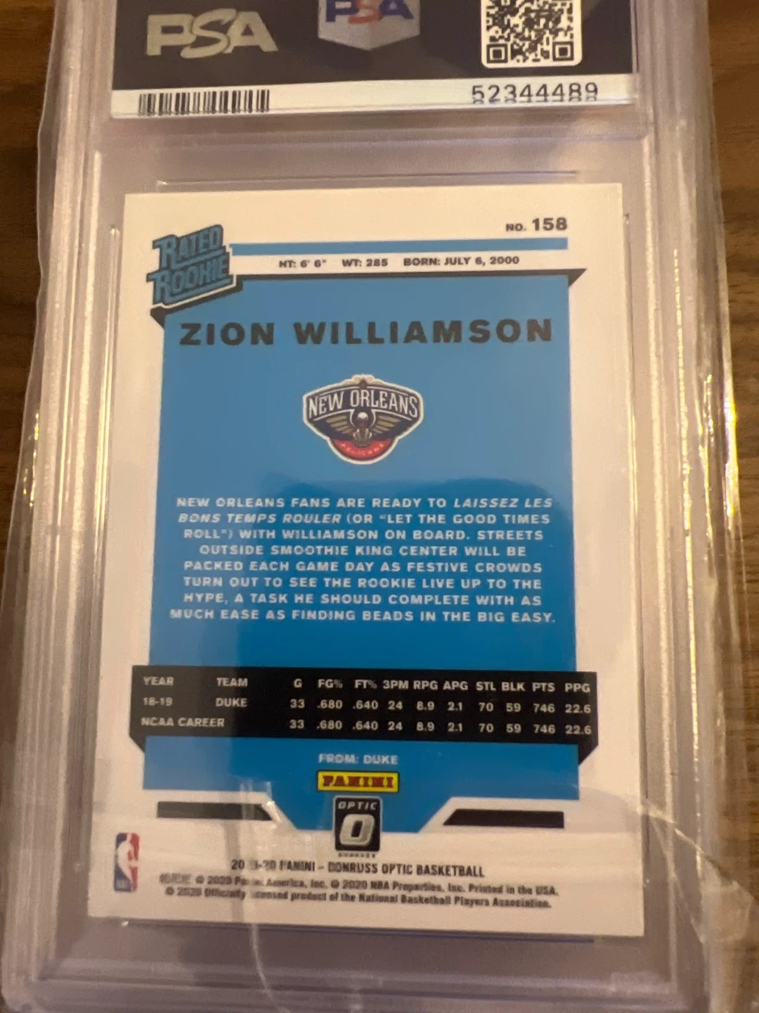 Buy & Sell2019 Panini Donruss Optic Zion Williamson #158 PSA 10 Gem Mint2019 Panini Donruss Optic Zion Williamson #158 PSA 10 Gem Mint$36This is a 2019 Panini Donruss Optic basketball card featuring Zion Williamson, graded PSA 10 Gem Mint. It's card number 158 from the set.WHERE TO MEETF45 GymView MapSELLERverifiedAdamWoodbine Corridor33124 reviews1 chats·1 favorites·6 viewsSEND CHAT TO SELLERHi Adam! I’m interested in your listing.Hi Adam! I’m interested in your listing.Get the Karrot app to chatSign In to chat