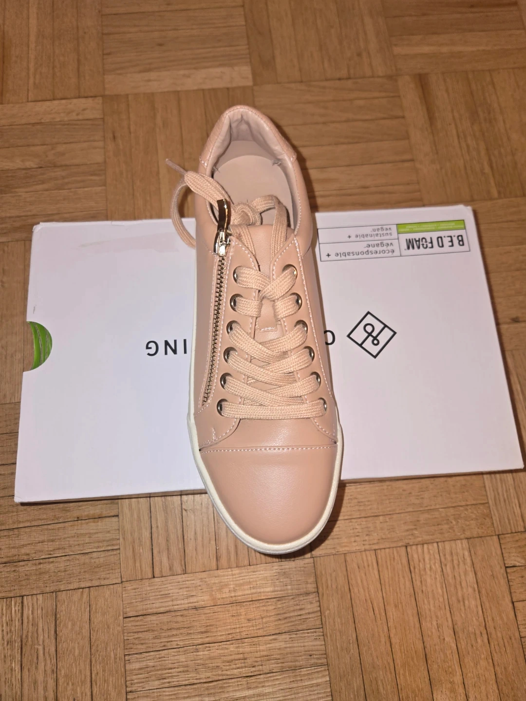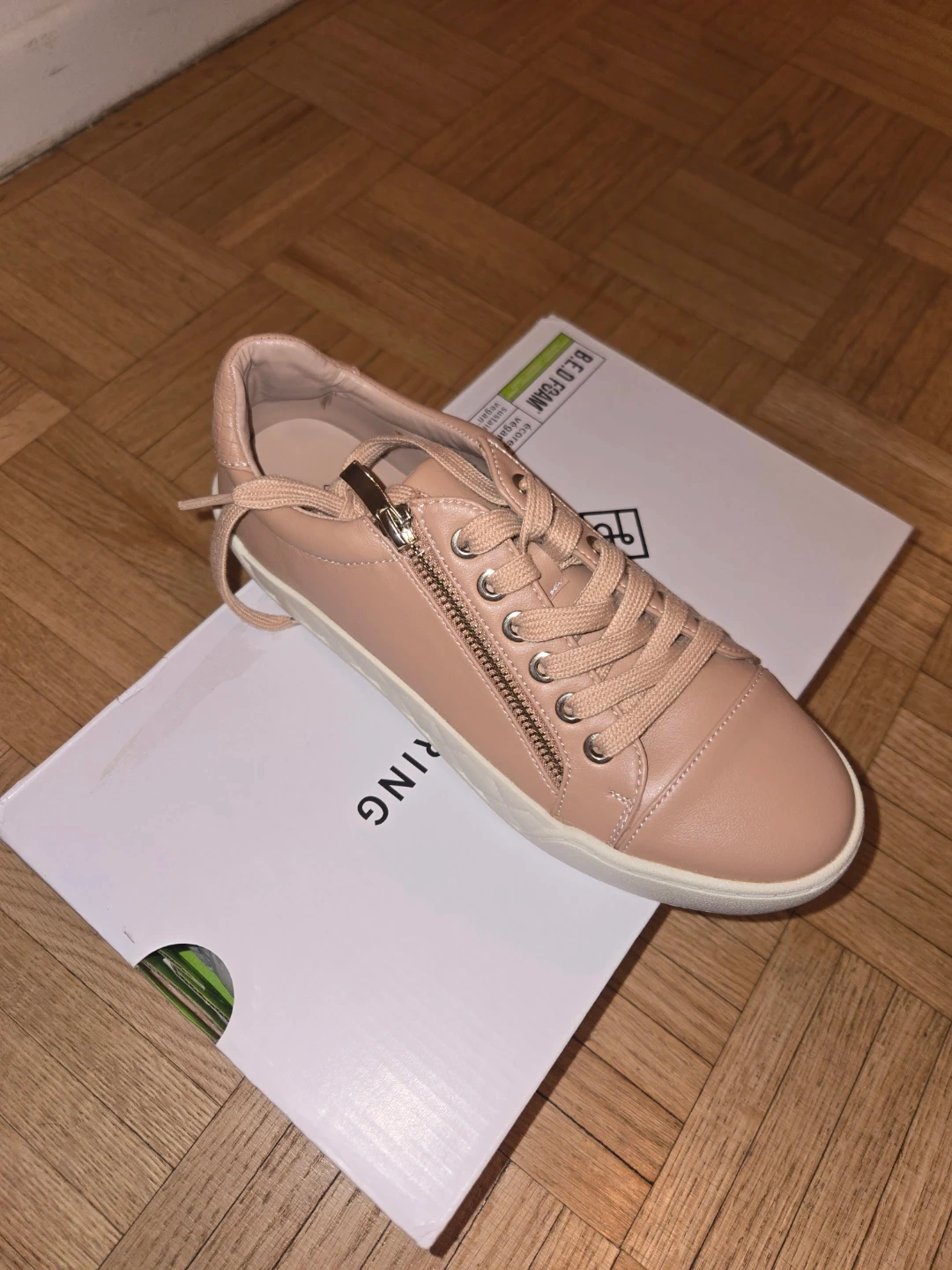 Size 7.These stylish pink sneakers feature a convenient side zipper and lace-up closure. They're made from a faux leather material with a comfortable lining. Great for casual wear! Pick up only. No refund