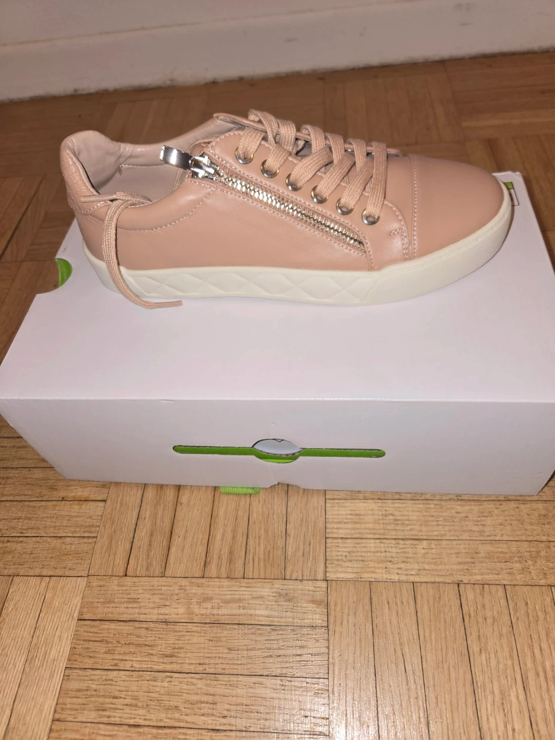 Size 7.These stylish pink sneakers feature a convenient side zipper and lace-up closure. They're made from a faux leather material with a comfortable lining. Great for casual wear! Pick up only. No refund