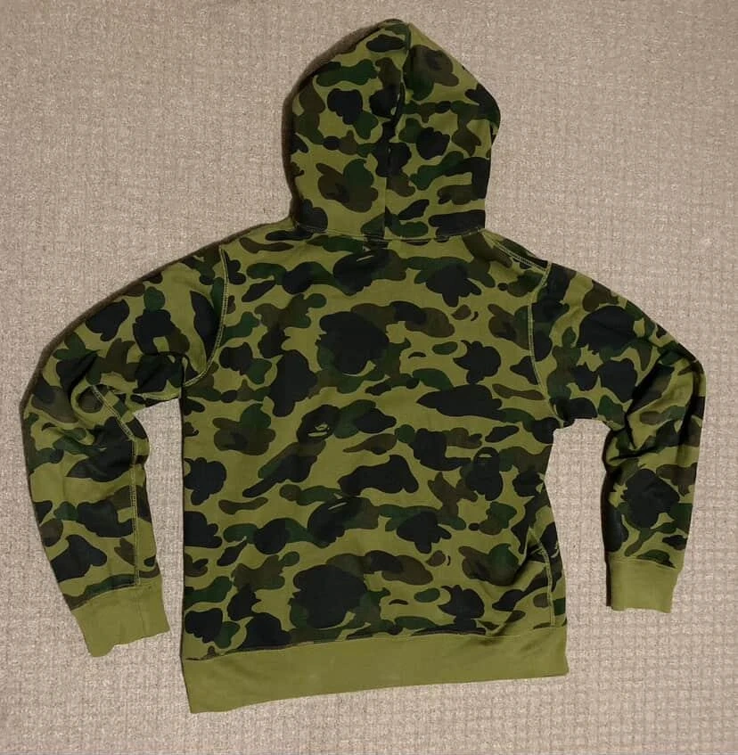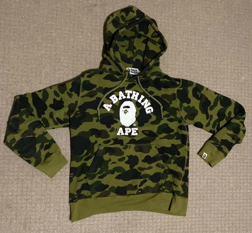 Selling a BAPE 1st Camo College Pullover Hoodie, one of the aglets are missing otherwise good condition.