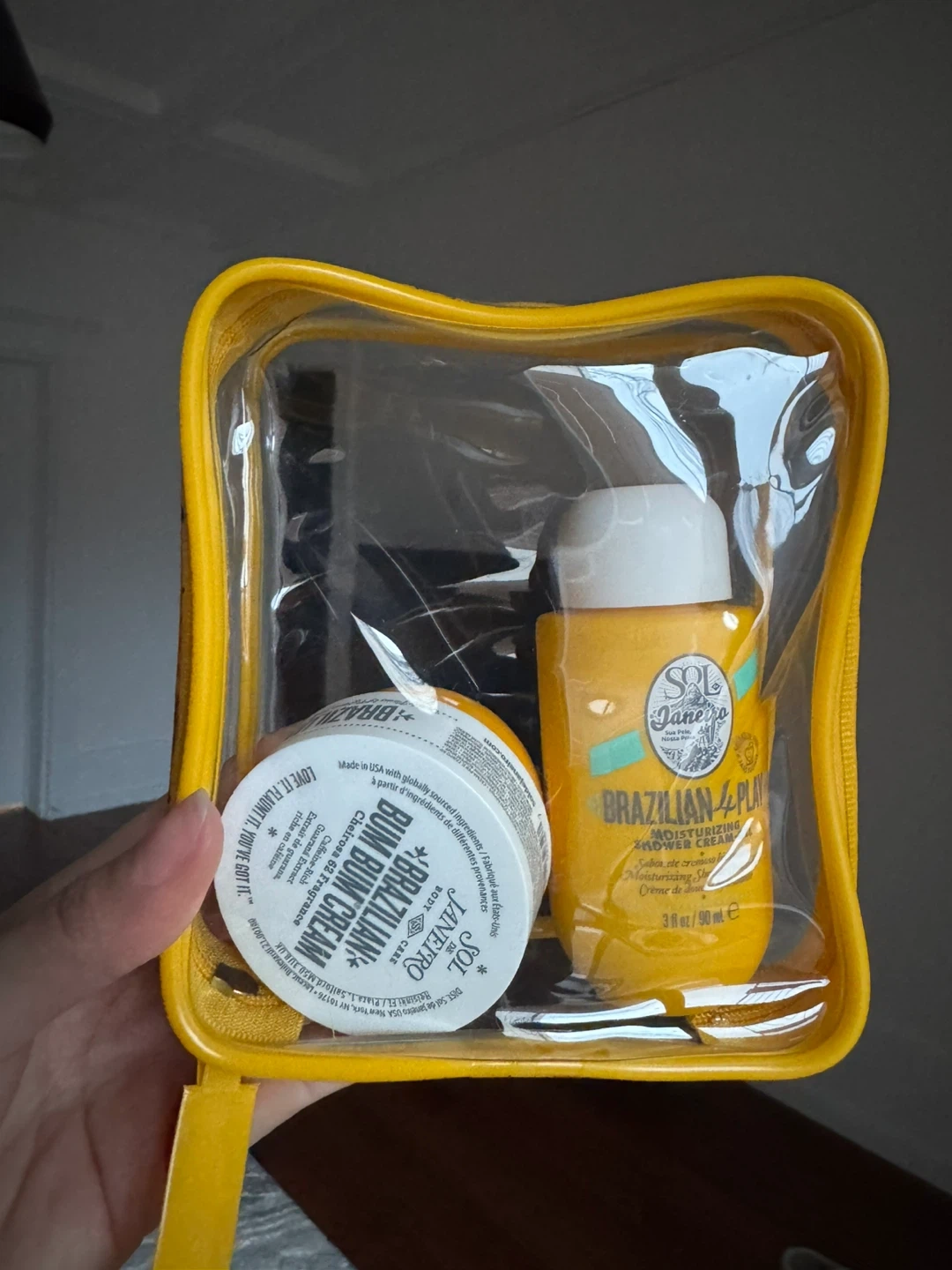 This Sol de Janeiro set includes a moisturizing body cream and a rich bum bum cream in a travel-friendly yellow pouch. The creams are formulated to leave your skin feeling soft and smelling amazing. Perfect for taking your favourite scents on the go! Just missing the perfume