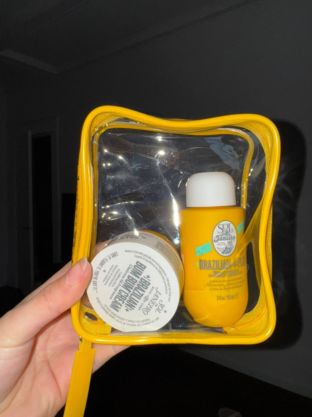 This Sol de Janeiro set includes a moisturizing body cream and a rich bum bum cream in a travel-friendly yellow pouch. The creams are formulated to leave your skin feeling soft and smelling amazing. Perfect for taking your favourite scents on the go! Just missing the perfume
