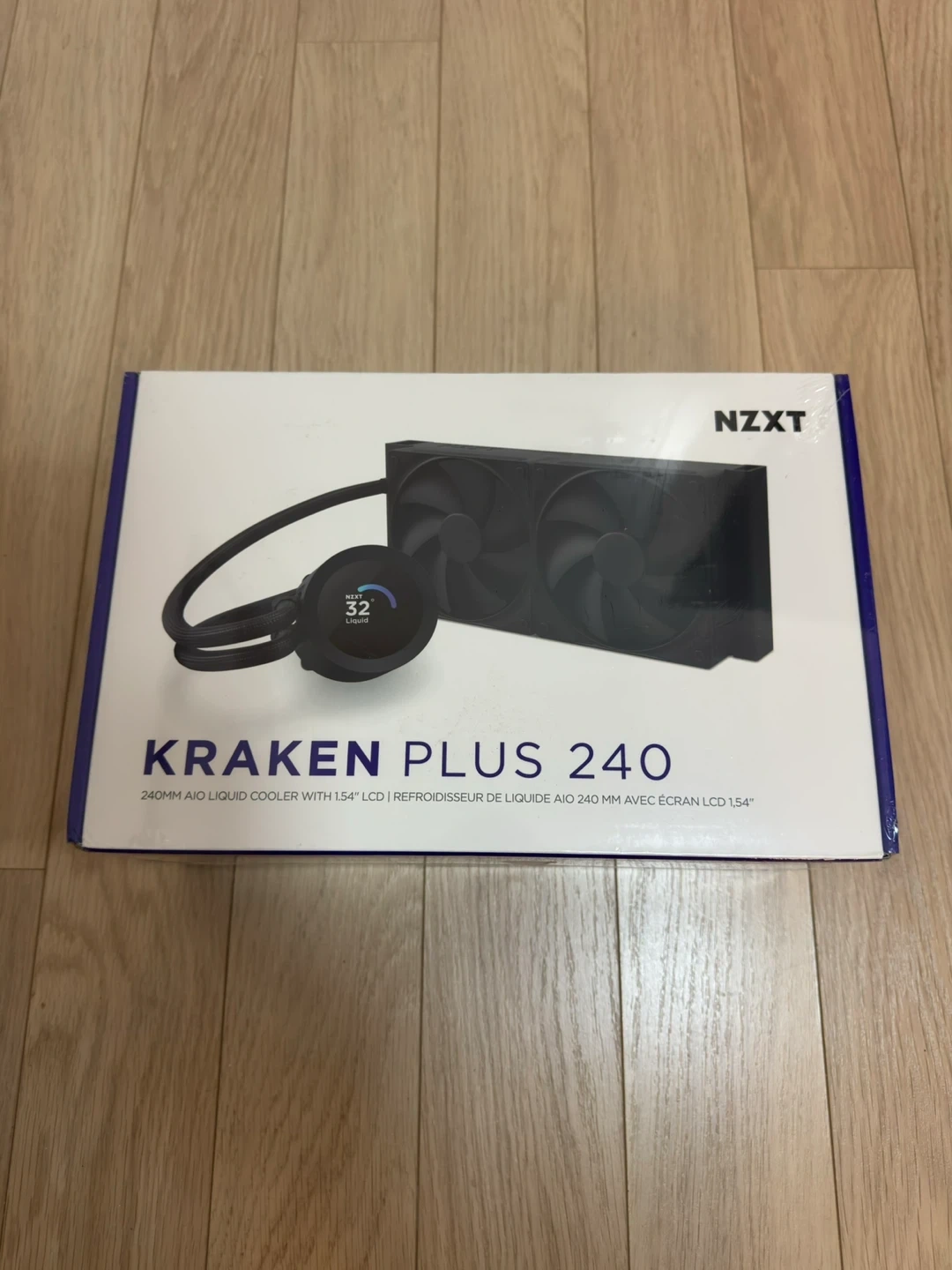 Brand new NZXT Kraken Plus 240 AIO liquid cooler. This is a 240mm cooler with a 1.54 inch square LCD display. The display has 240x240 resolution, 30 Hz refresh rate, and 300 cd/m² brightness. It has a powerful turbine pump and high static pressure radiator fans. Easy installation with pre-applied thermal paste. Color is black.