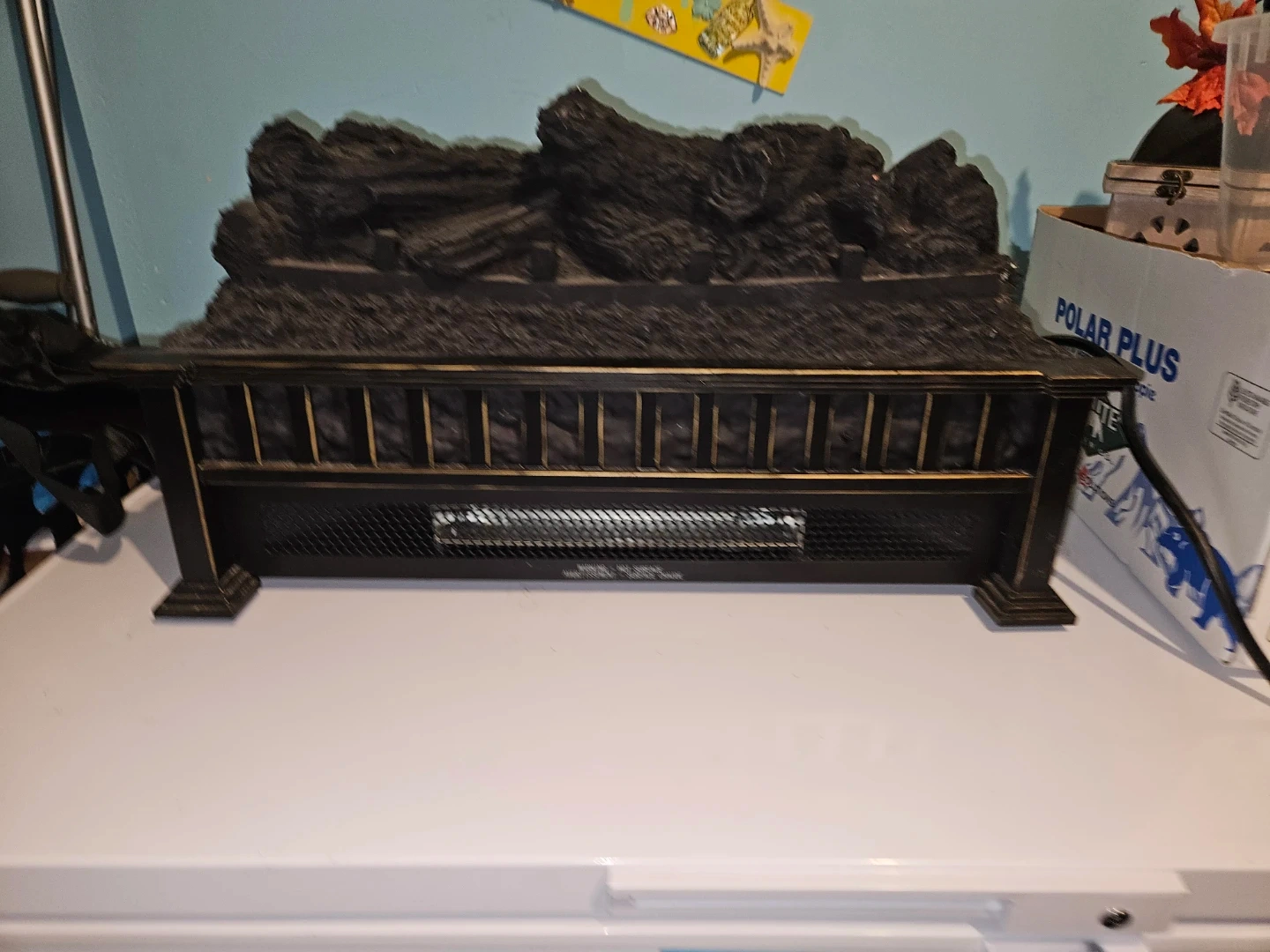 Electric fireplace heater log set with realistic-looking logs. It provides a cozy ambiance without the mess of a real fireplace. Domino infrared Electric Logset