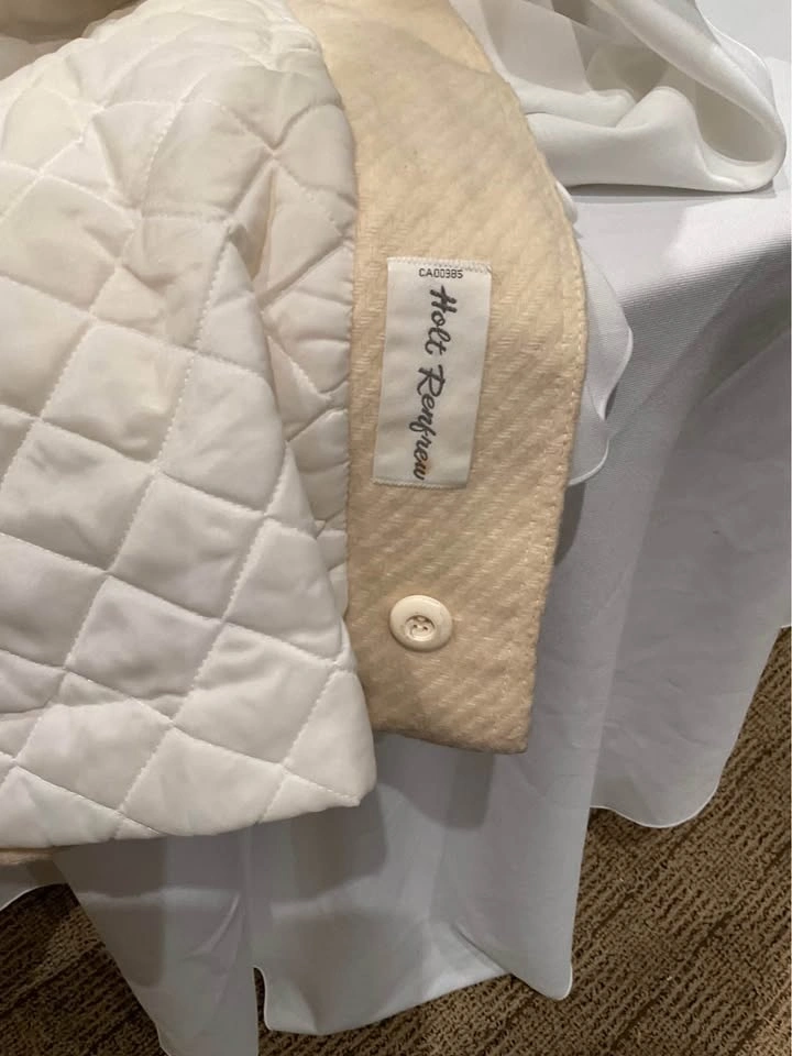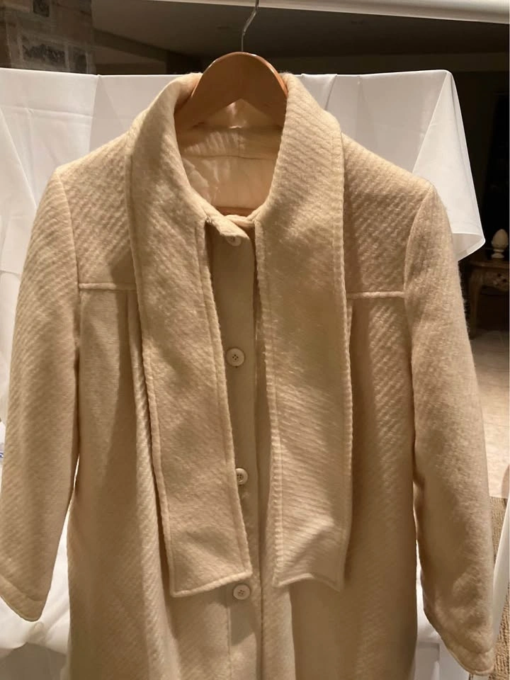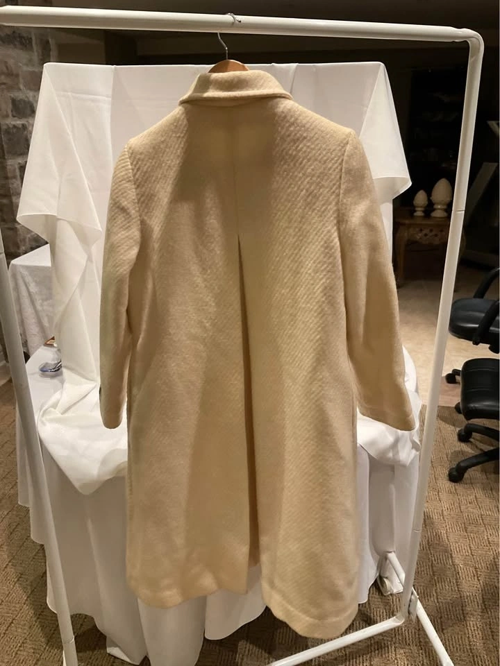 Vintage Holt Renfrew Paris Swing Coat. 100% Virgin Wool with a beautiful subtle pattern. Winter White - stunning coat! Shoulder-to-shoulder: 16”. Length: 40”. Tags in coat, cannot read size - fits like a Medium. Coat needs to be dry cleaned, it is priced accordingly. Smoke & Pet Free Home. Cash Only - Richmond Hill / Bathurst & King Rd.