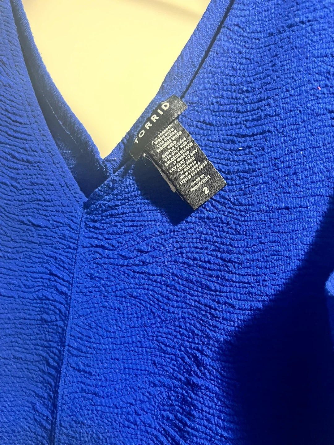 Torrid blue textured V-neck tank top. Made with a blend of polyester and spandex. Size 2. Excellent barely used condition, super cute, just a little bit too big on me.