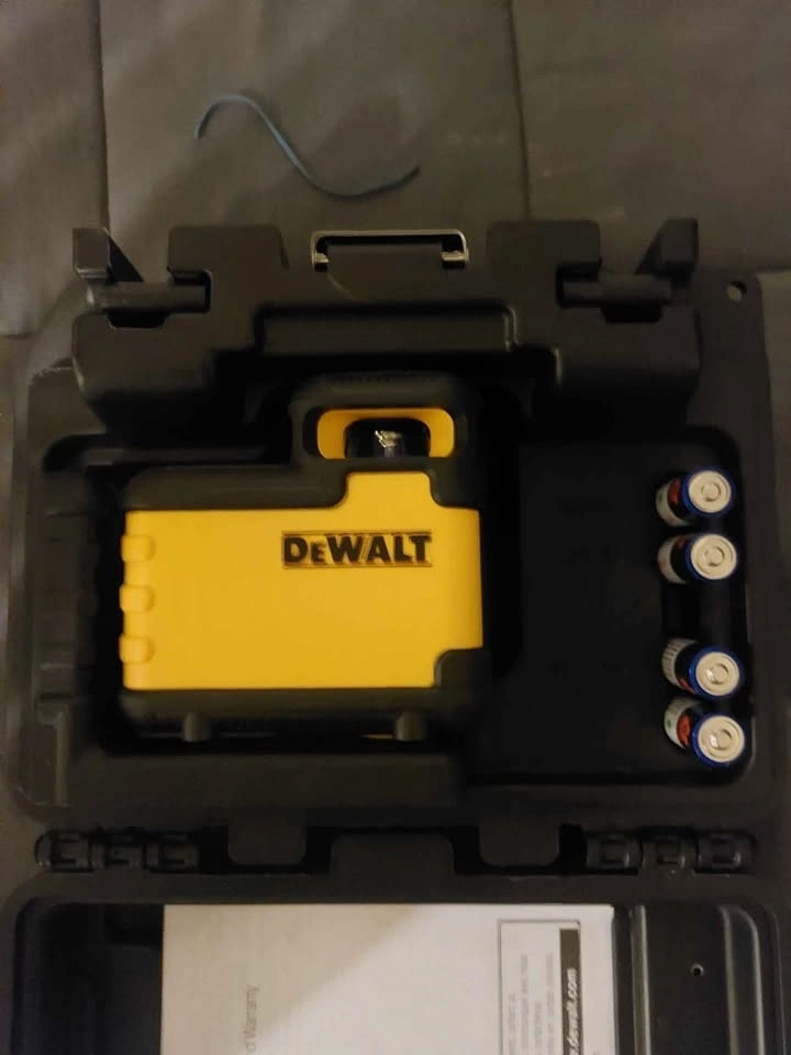 This DEWALT 360° Red Beam Cross Line Laser Level is great for a variety of projects, from remodeling to woodworking to installing drywall. It features a locking pendulum and over-molded housing for durability. The integrated bracket makes it easy to mount on different surfaces. Includes 100° vertical line + 360° horizontal line, a 3-position lock switch with manual mode, and a 1/4-inch x 20 thread mount for tripod use. It also has a locking pendulum, integrated magnetic bracket, and a touch-pad control panel. Asking $160 Or Best Offer.