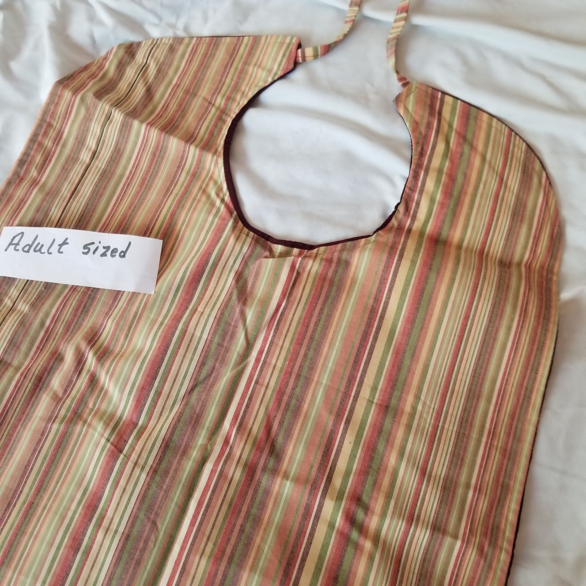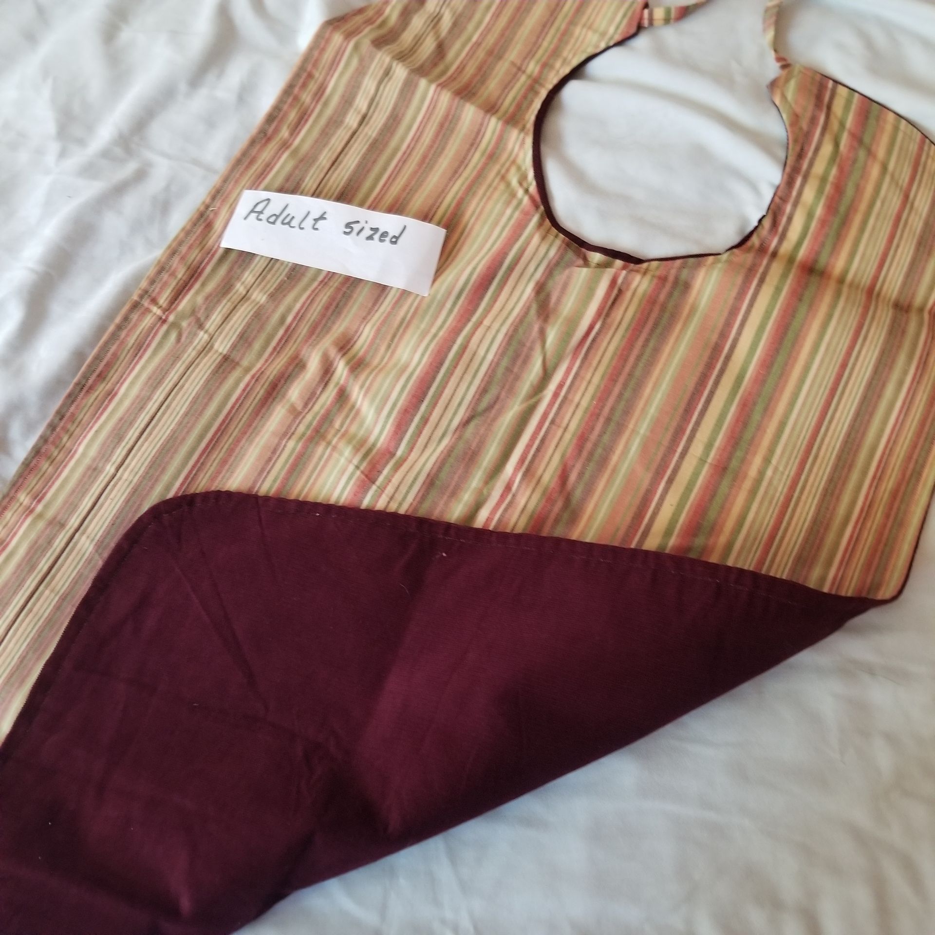 Adult Size Bib - Earth Tone Stripes & Maroon Corduroy Handmade