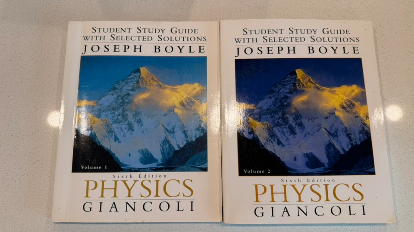 Physics textbook by Giancoli, Sixth Edition. Includes the main textbook and a two-volume student study guide with selected solutions. Excellent resource for physics students!