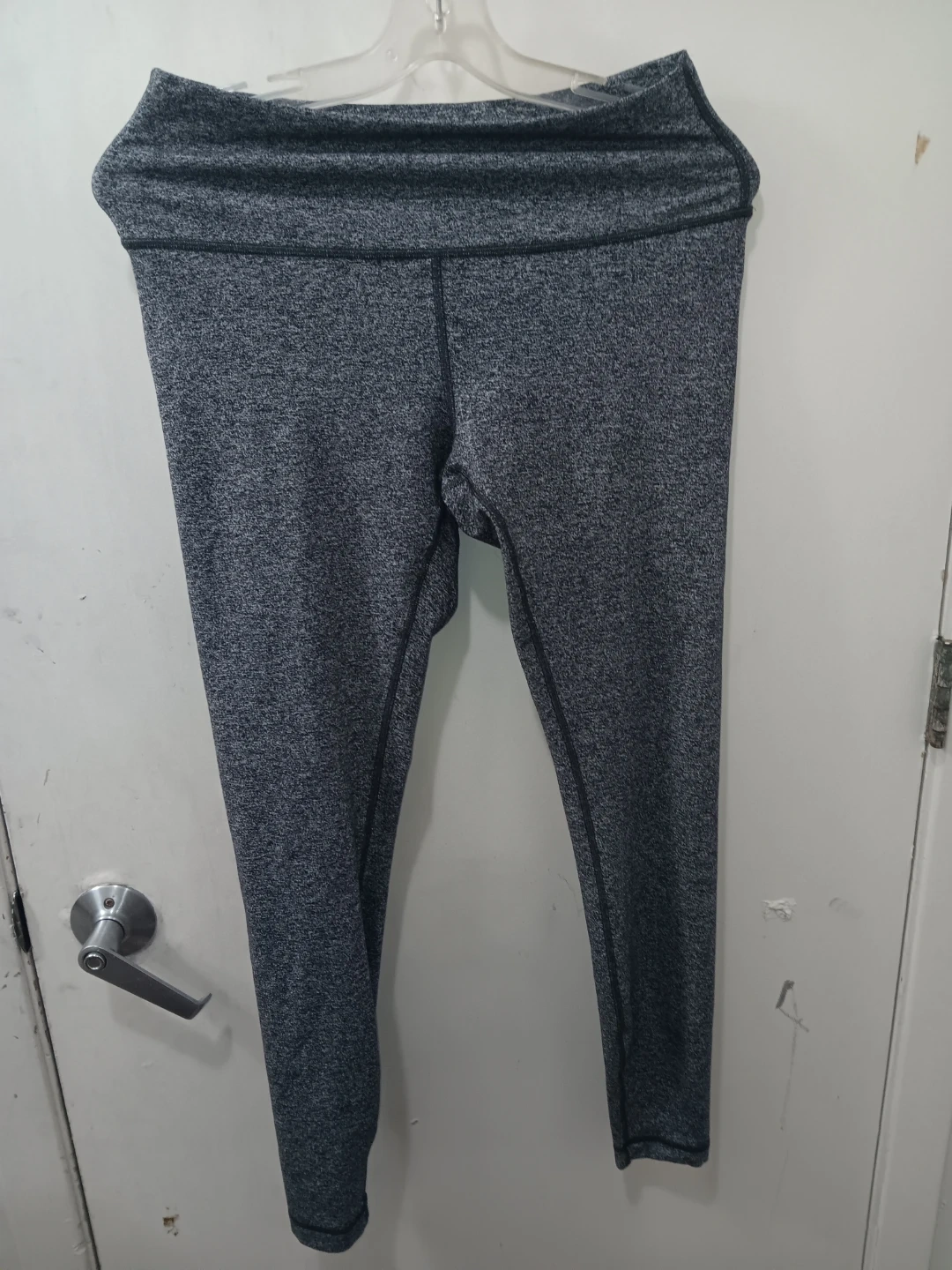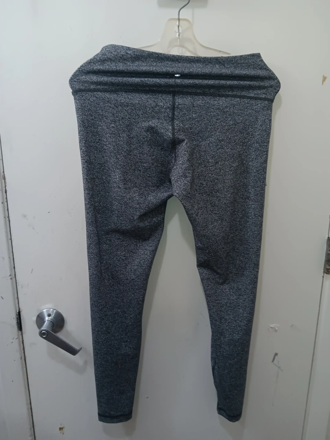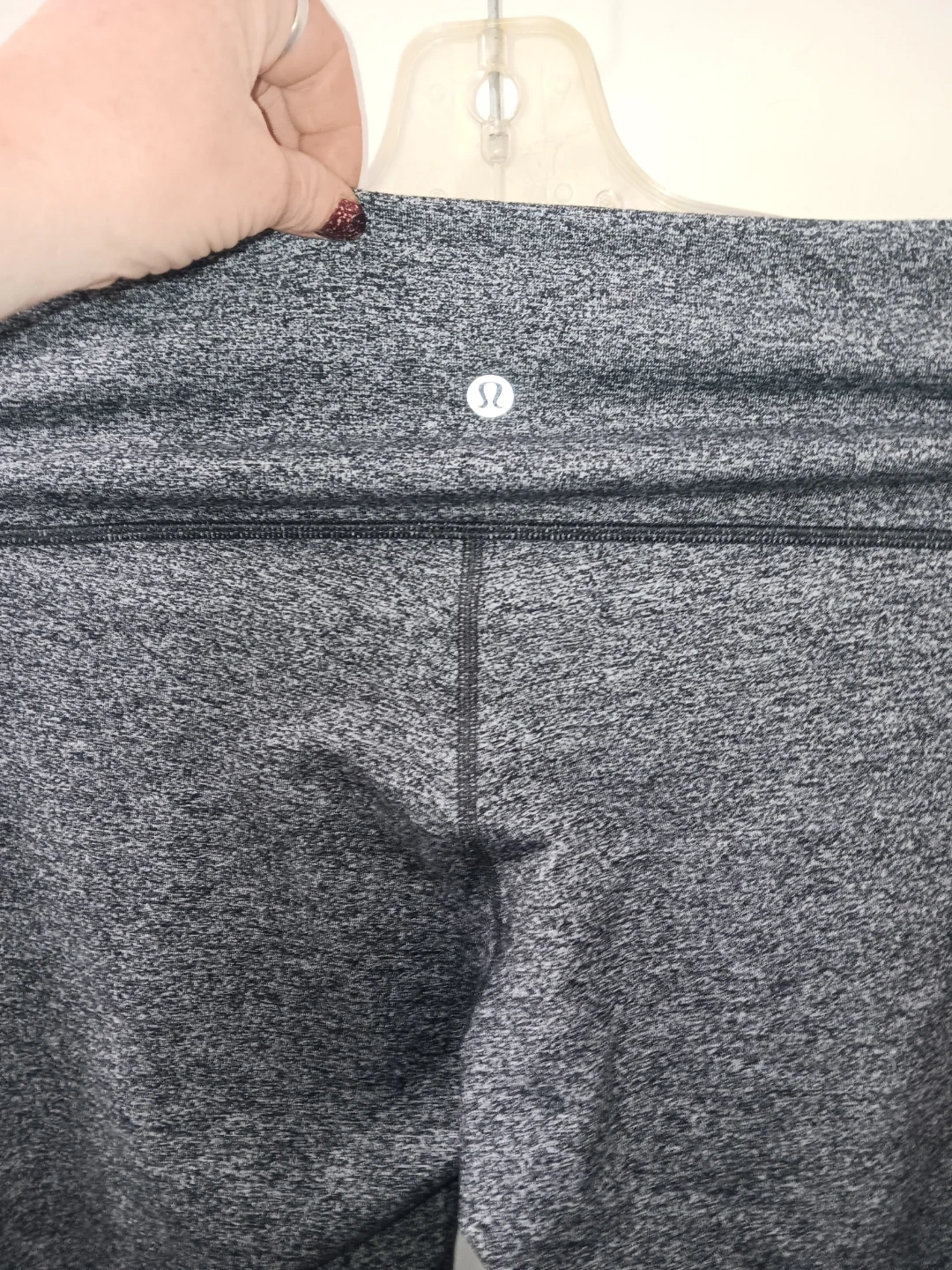 Lululemon athletic leggings in a grey speckled pattern. Size 10. Made with a polyester and elastane blend for a comfortable fit.