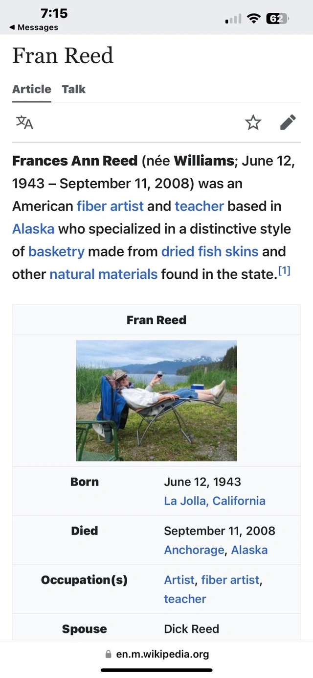 Buy & SellSalmon Skin Basket by Fran ReedSalmon Skin Basket by Fran Reed$1,500Fan Reed fish skin art bowl. Very rare piece.WHERE TO MEETCheck LocationView MapSELLERDave AmodeoMillbrook150 reviews0 chats·0 favorites·1 viewsSEND CHAT TO SELLERHi Dave Amodeo! I’m interested in your listing.Hi Dave Amodeo! I’m interested in your listing.Get the Karrot app to chatSign In to chat