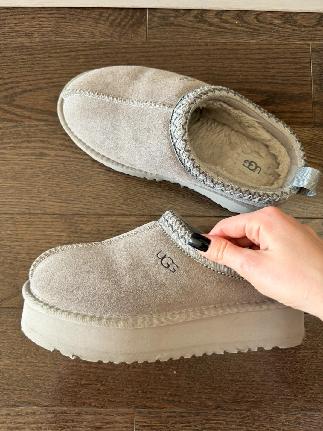 Cozy UGG TAZZ perfect for keeping your feet warm. Suede exterior with a plush fleece lining. Easy to slip on! LIMITED