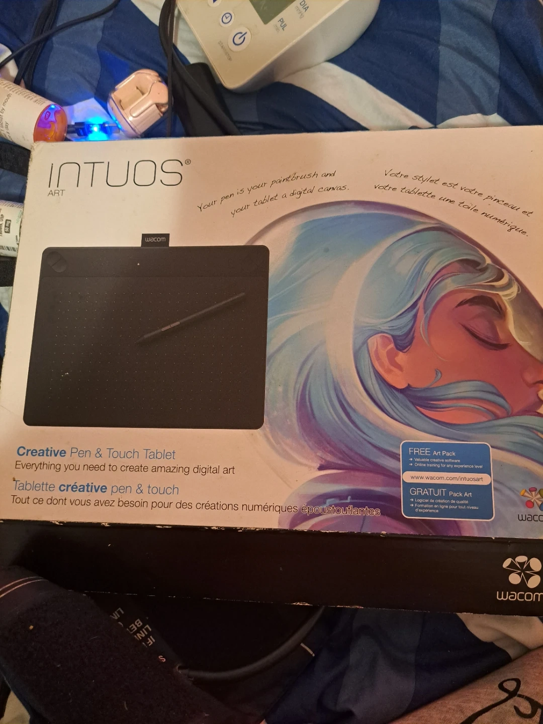 This is a Wacom Intuos Art creative pen and touch tablet. It's designed for creating digital art. Tablet includes pen and USB cable.