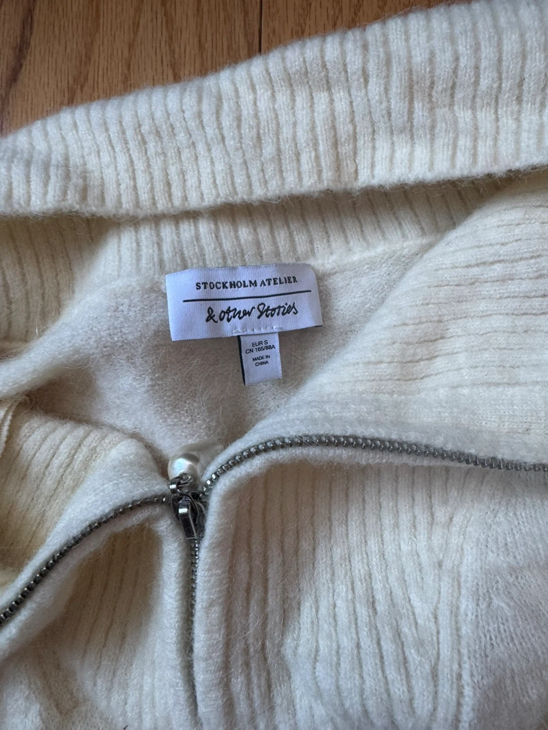 Cream & Other Stories quarter zip sweater. It's a cozy knit with a funnel neck. worn two times maybe?