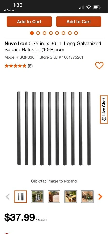 Buy & SellDeck Railing Balusters (25 pieces)Deck Railing Balusters (25 pieces)$50Brand new. Feel free to message if you have any questions!WHERE TO MEETGrimsbyView MapSELLERSebGrimsby100 reviews0 chats·0 favorites·5 viewsSEND CHAT TO SELLERHi Seb! I’m interested in your listing.Hi Seb! I’m interested in your listing.Get the Karrot app to chatSign In to chat