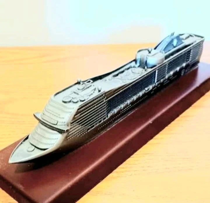 This is a detailed replica of the MSC Splendida liner, perfect for collectors or maritime enthusiasts. It's in good condition and ready to be displayed. The ship has a placard with the ships name on it. The base is mahogany wood.