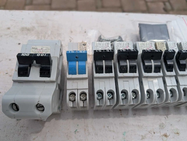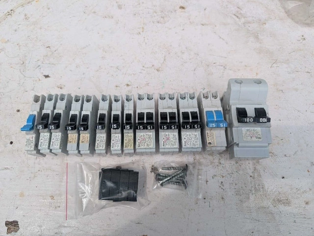 Federal Pioneer Stab-lok circuit breakers. This lot includes 15 amp 15 amp double pole, 20 amp, and 100 amp breakers. Breakers New and used condition. Here are some details: * Brand: Federal Pioneer * Type: Sta lok Circuit Breakers * Amperage: 15A, 20A, 100A Pricing starts at $15 and up Call or text 705-440-9159