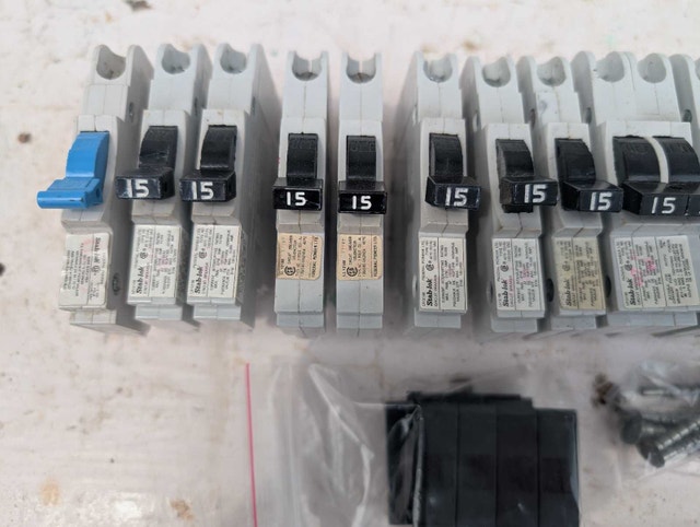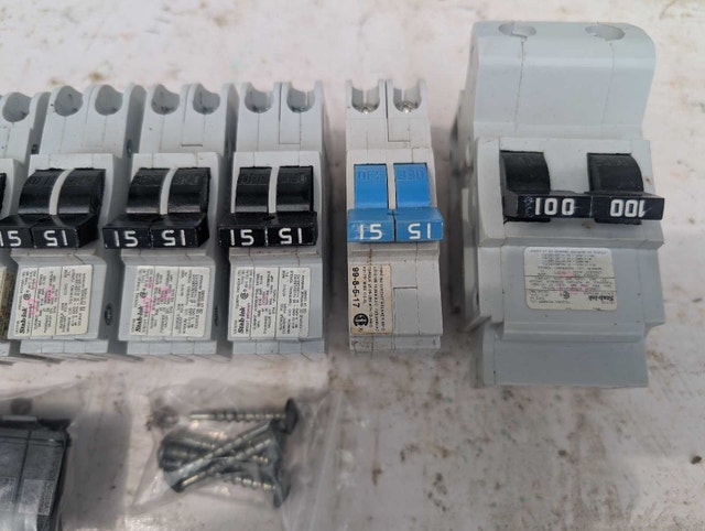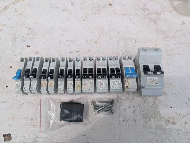 Federal Pioneer Stab-lok circuit breakers. This lot includes 15 amp 15 amp double pole, 20 amp, and 100 amp breakers. Breakers New and used condition. Here are some details: * Brand: Federal Pioneer * Type: Sta lok Circuit Breakers * Amperage: 15A, 20A, 100A Pricing starts at $15 and up Call or text 705-440-9159