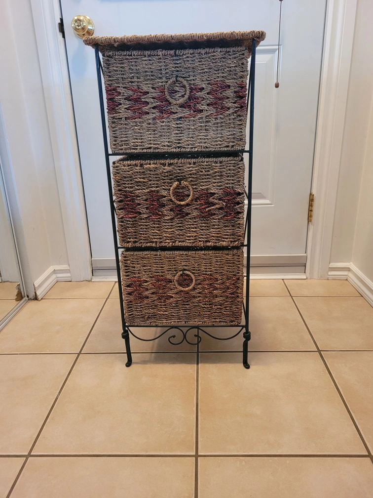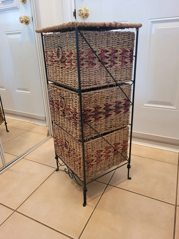This woven storage tower has three drawers, perfect for adding some extra storage to any room. It's in great shape and ready for a new home!
