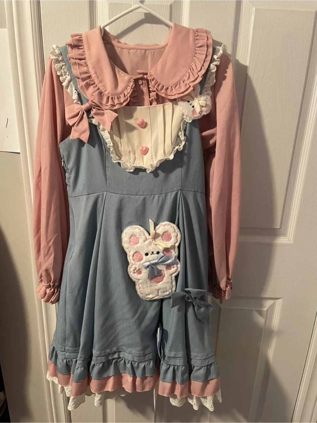 Blue jsk dress plus pink shirt