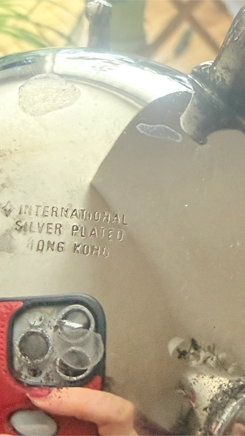 This elegant three-piece set includes a coffee pot, creamer, and sugar bowl. It's silver plated and made in Hong Kong. Perfect for serving guests or special occasions!