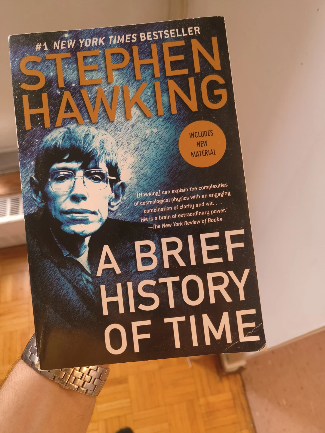 This is Stephen Hawking's "A Brief History of Time." It's a #1 New York Times Bestseller that includes new material. A great read for anyone interested in cosmology!