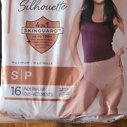 Silhouette Underwear in size S. The packaging highlights the 4IN1 SKINGUARD™ for up to 100% breathable comfort and irritation-free fit. Contains 16 underwear. 62 Packages Available
