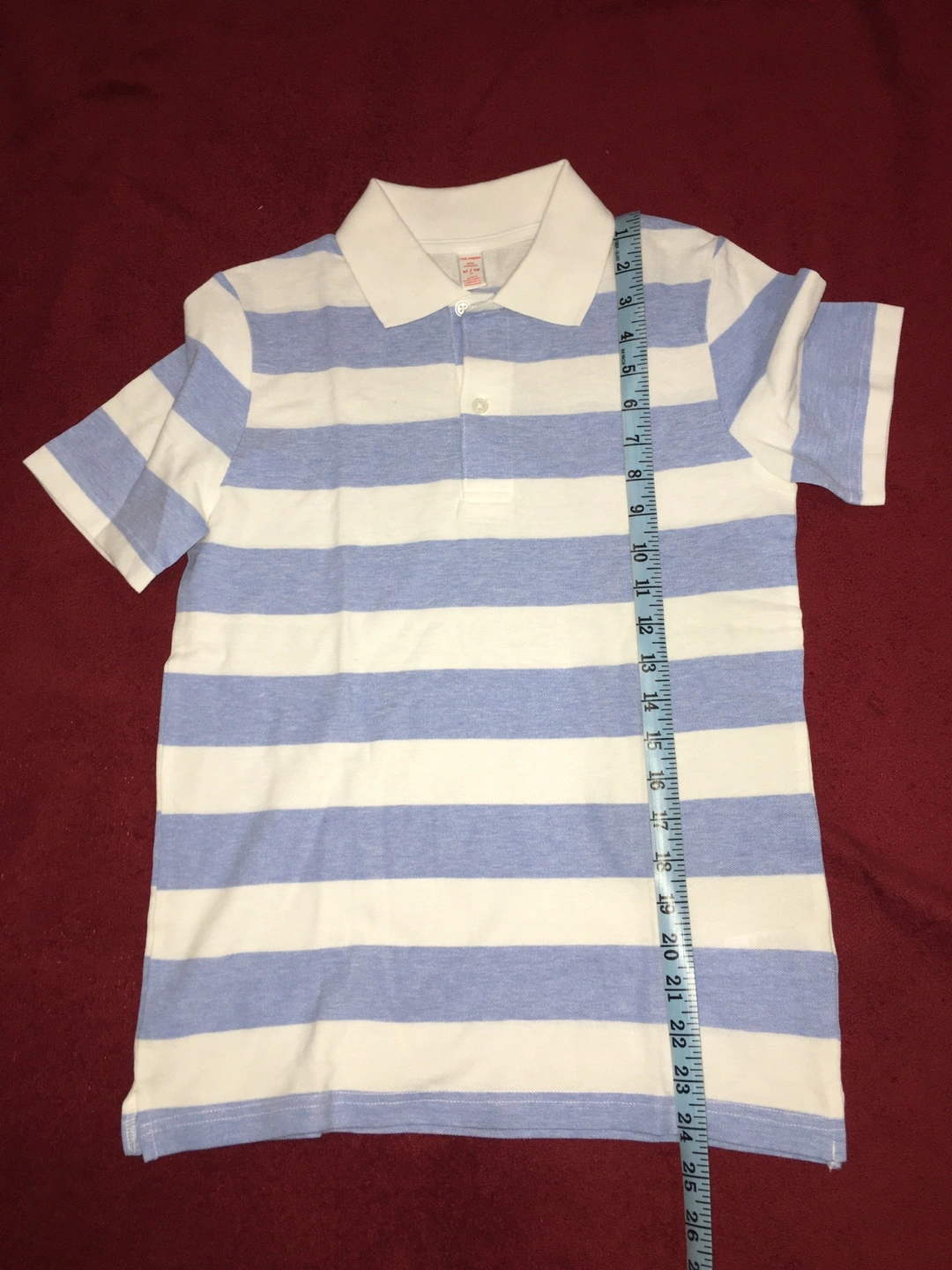 Boys Joe Fresh polo shirt with blue and white stripes. It's a size XL.